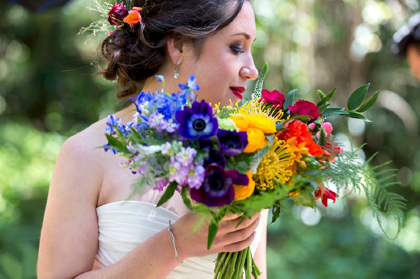 This was a destination wedding with guests traveling to California from all over the United States. The Jewish inspired ceremony took place in the natural beauty of the San Francisco Presidio